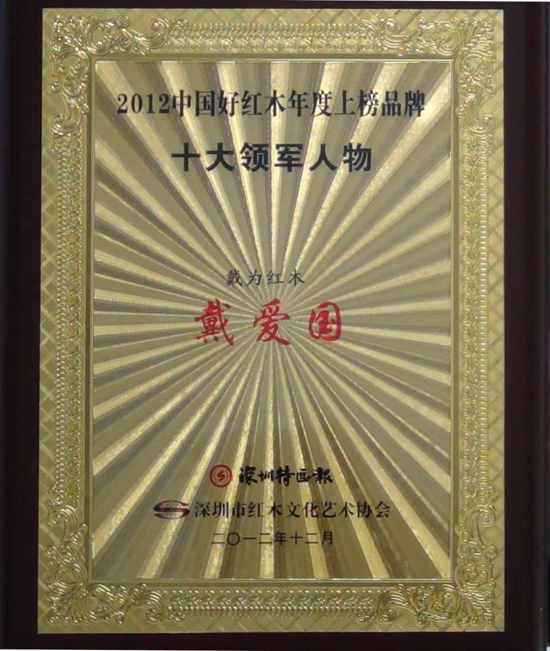 总裁戴爱国荣获2012中国好红木年度上榜品牌十大领军人物