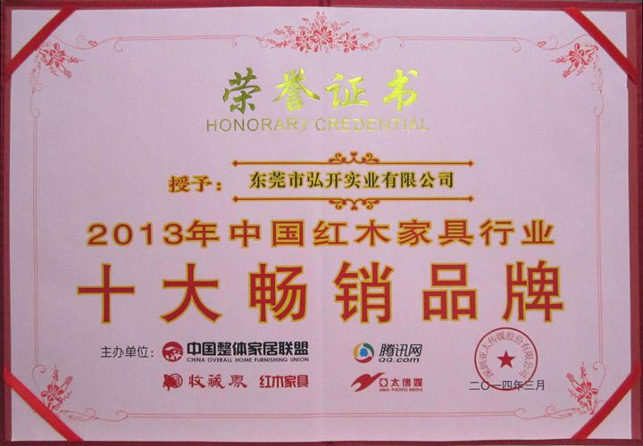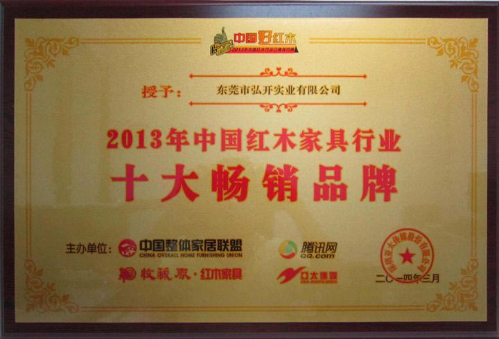 本公司被评为2013年中国红木家具行业十大畅销品牌