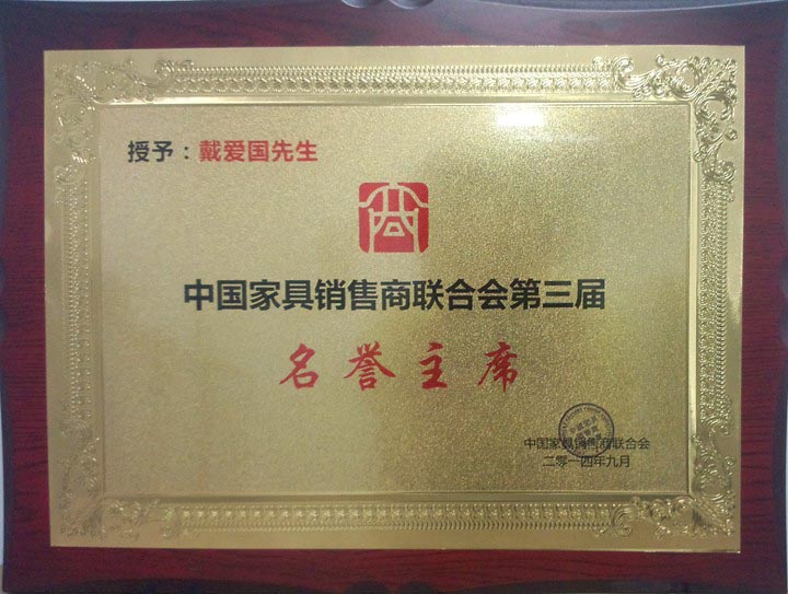 总裁戴爱国被委任为中国家具销售商联合会第三届名誉主席