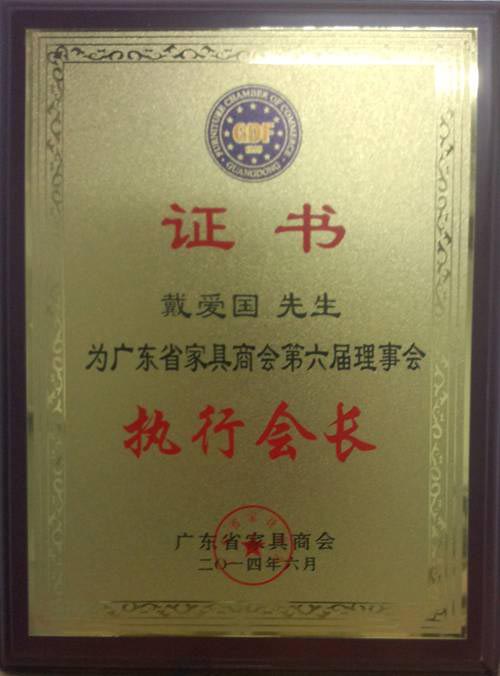 总裁戴爱国被委任为广东省家具商会第六届理事会执行会长