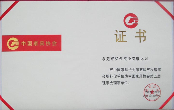 本公司成为中国家具协会第五届理事会理事单位