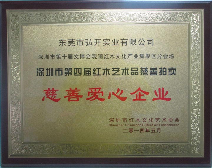 本公司被评为深圳市第十届文博会观澜红木文化产业集聚区分会场、深圳市第四届红木艺术品慈善拍卖慈善爱心企业