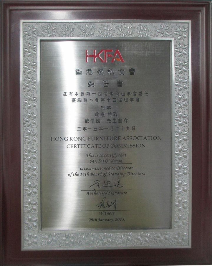 总裁戴爱国被委任为香港家私协会第十四届理事会理事